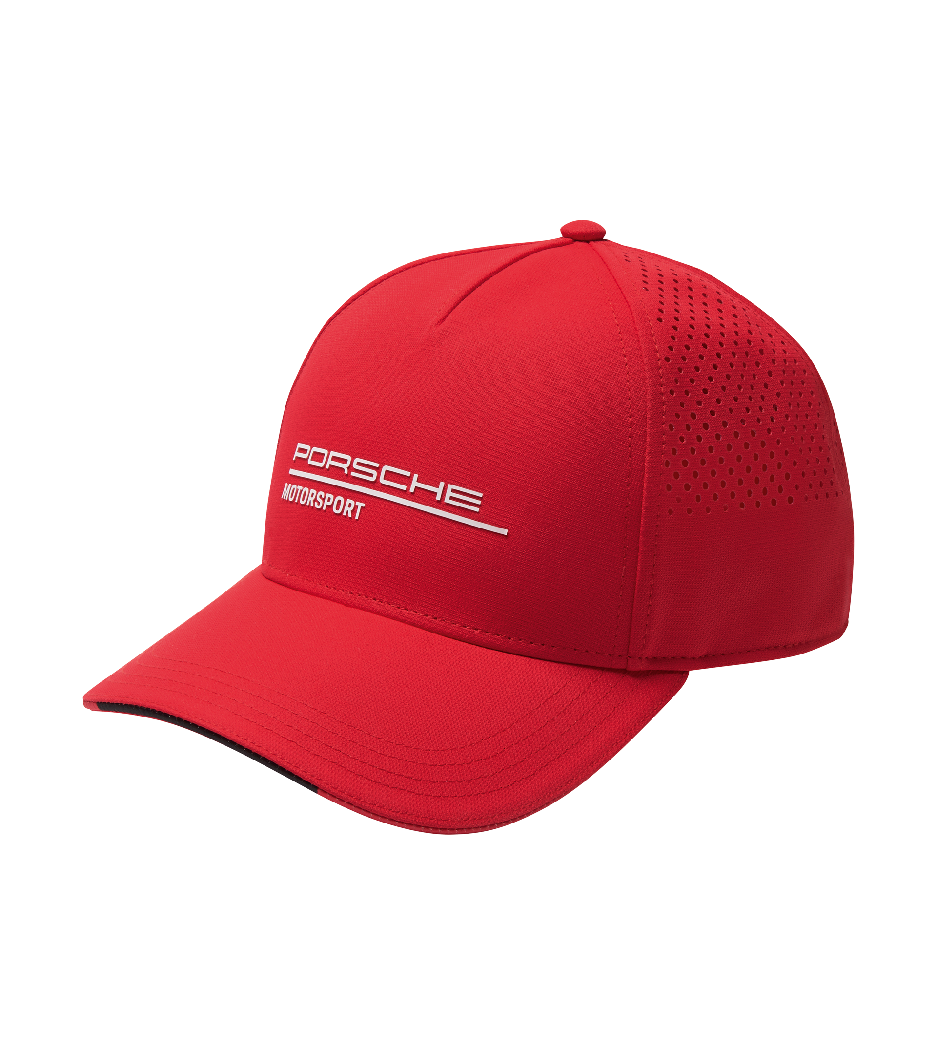 Gorra de béisbol perforada de 5 paneles con cierre de botón «snapback» y emblema «PORSCHE MOTORSPORT». En la parte trasera dispone de un botón con el anagrama «PORSCHE».